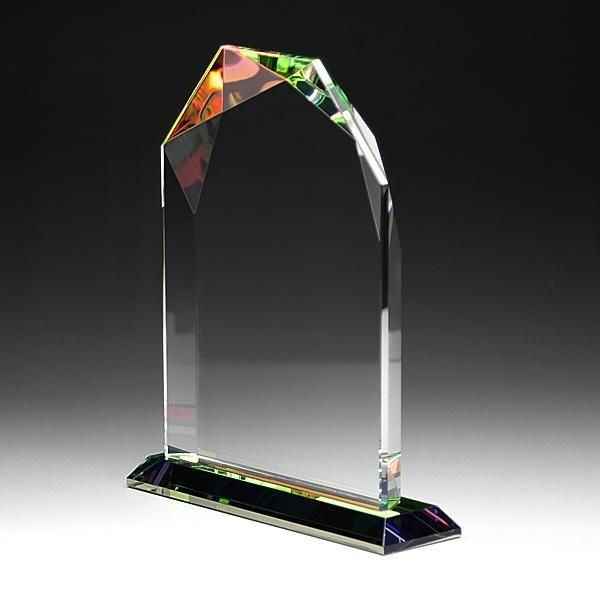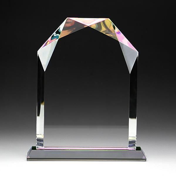 説明どっしりと高級感のあるデザインで底面に施された特殊なホログラム加工がクリスタルのカットに反射し、見る角度で色が変化して見えます。(クリスタル自体は透明です。)彫刻面が広いので文字内容の多いお客様にもお勧めです。上部は厚みがございますので高級感があり感謝状や表彰状、認定証、周年記念、勤続表彰など様々な記念品として最適です。