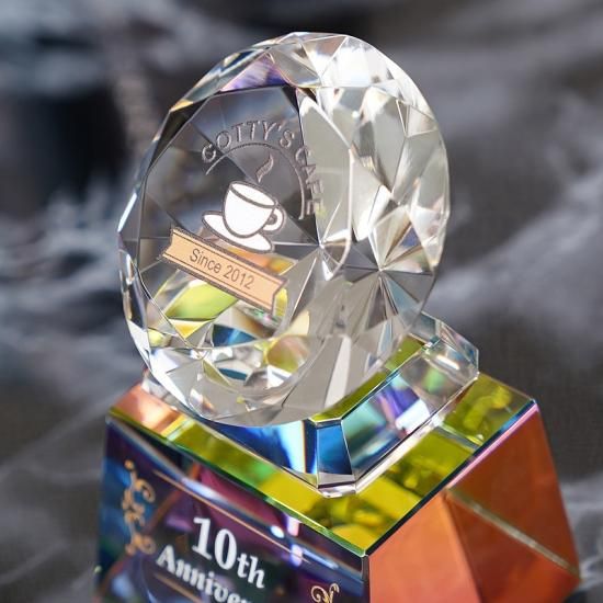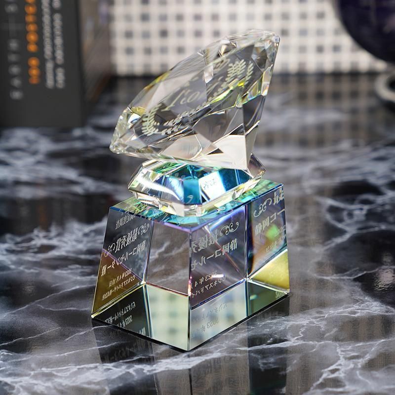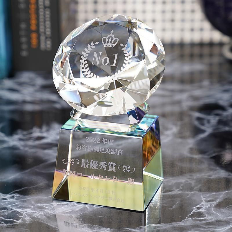 クリスタルダイヤモンドにロゴマークや優勝などの文字を加工できるトロフィーです。