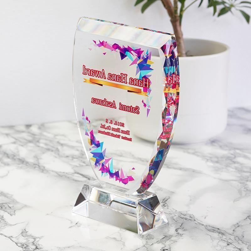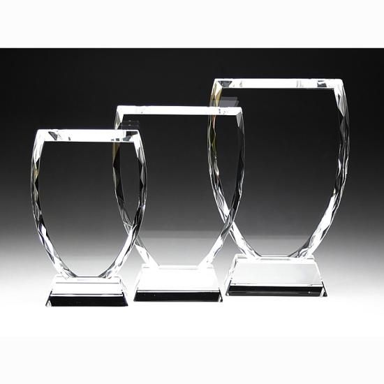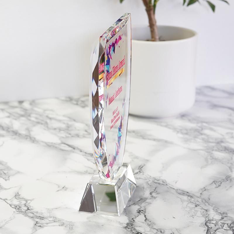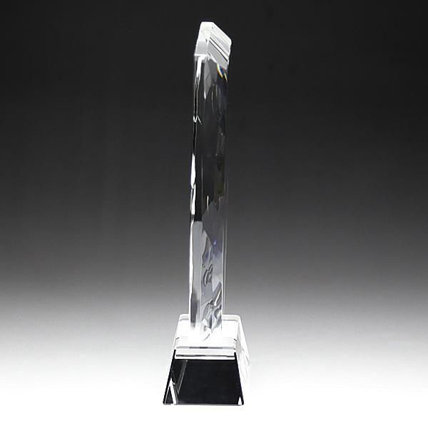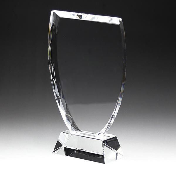 緩やかにラウンドしたカップ型デザインがモダンな印象のクリスタル盾です。