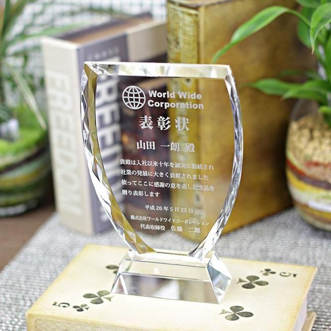 説明1点1点職人の手作業でカット・研磨をおこなったクリスタル表彰盾です。