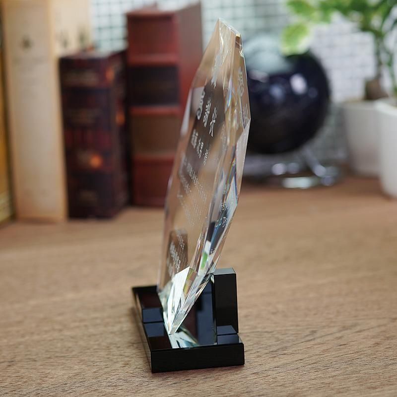 シンプルなデザインに背面側のカットが光を美しく反射する、高貴な雰囲気のクリスタル表彰盾です。