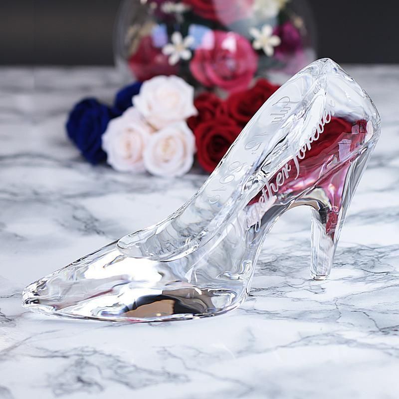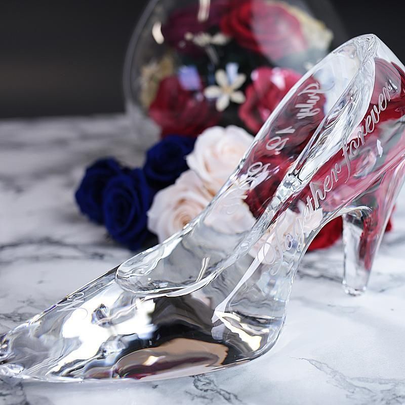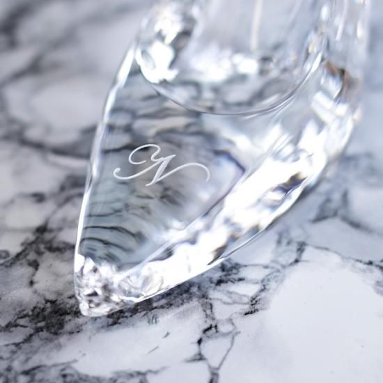 そのガラスの靴に、名入れ・メッセージを彫刻します。