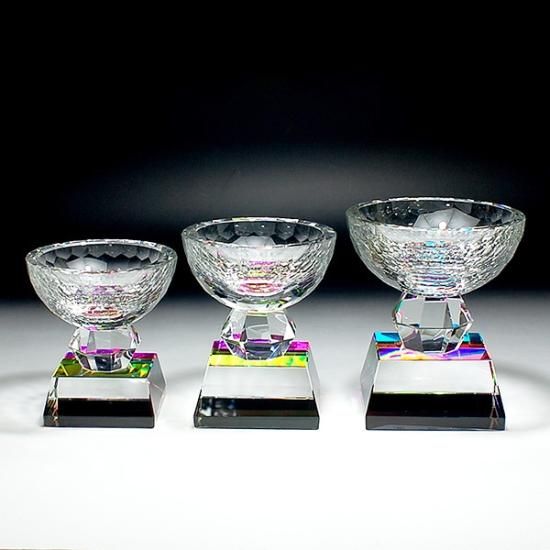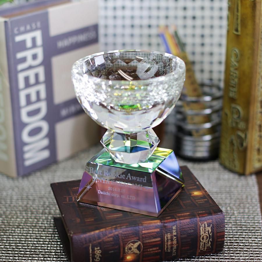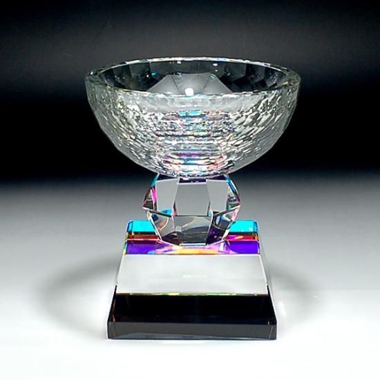 ダイヤカットが美しく輝くカップ形のクリスタルトロフィーです。