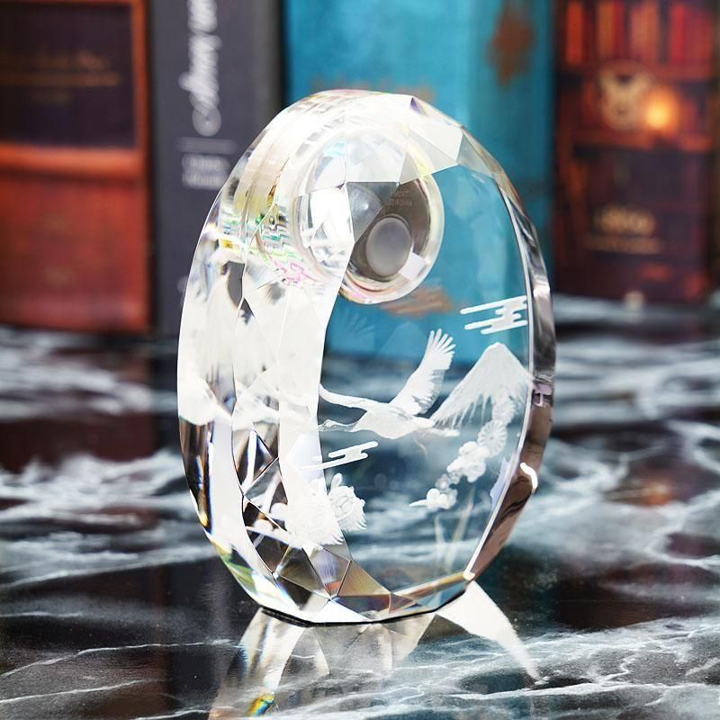 説明最先端のレーザー光線技術で、クリスタル内部にモチーフを立体的に彫刻したクリスタル製置時計です。