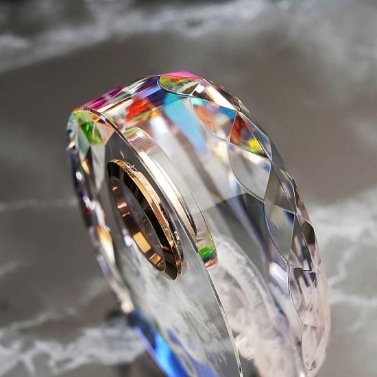底面のホログラム加工により見る角度でガラスが虹色に美しく輝きます。