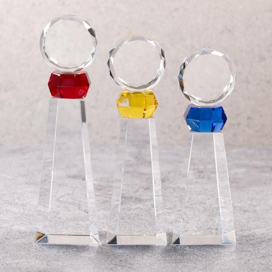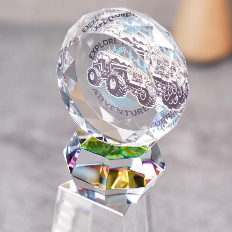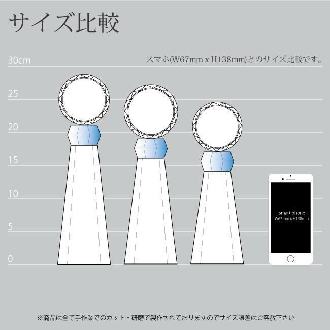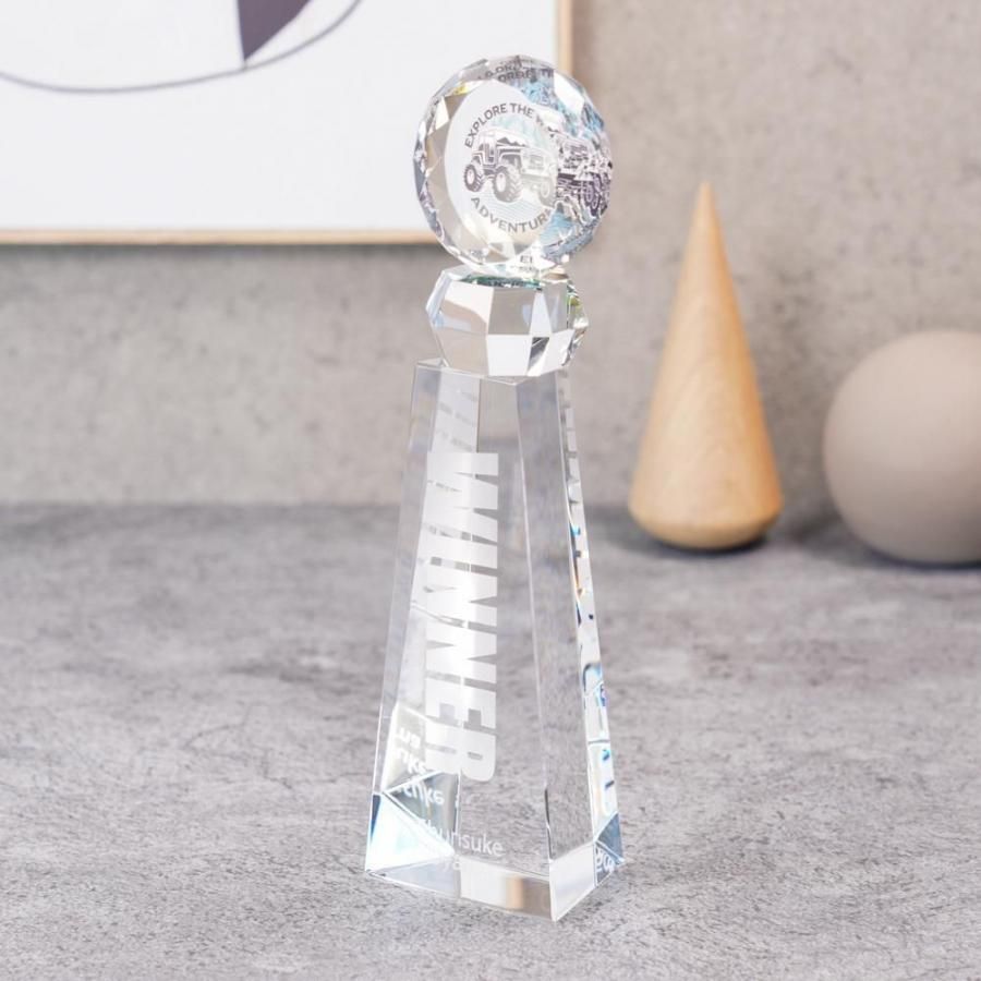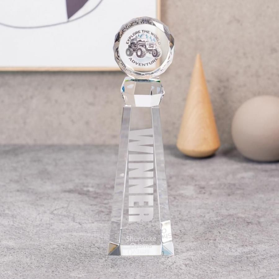 トロフィー上部と胴体両方に加工が可能な、ダイヤカットが美しく輝くクリスタルトロフィーです。