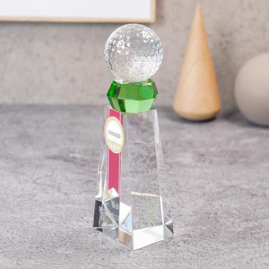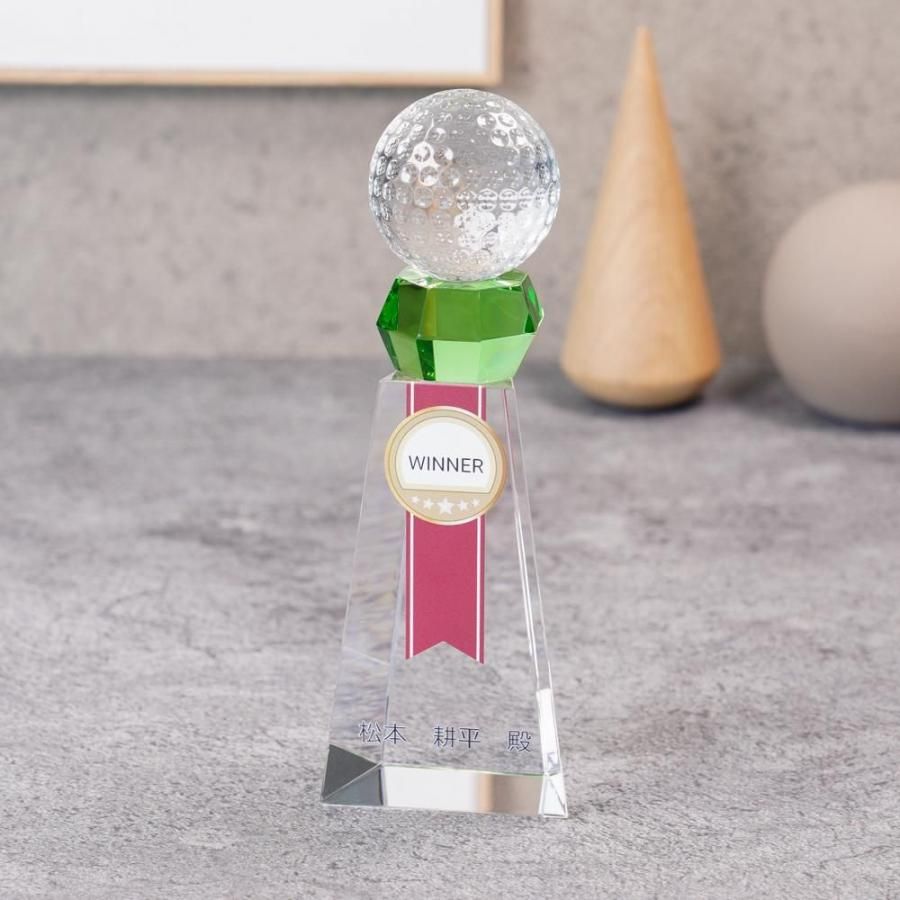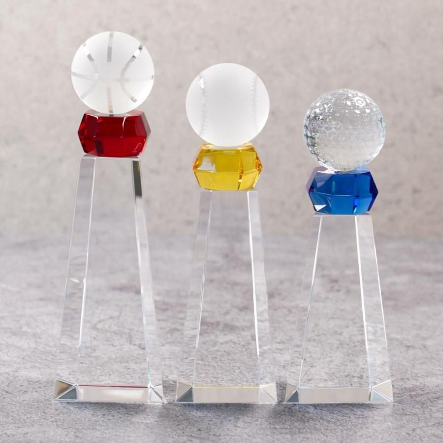 美しいボールが特徴的なクリスタルトロフィーです。ボールはサッカー、野球、ゴルフ、バレーボール、バスケットボール、地球の6種類よりお選びいただけます。