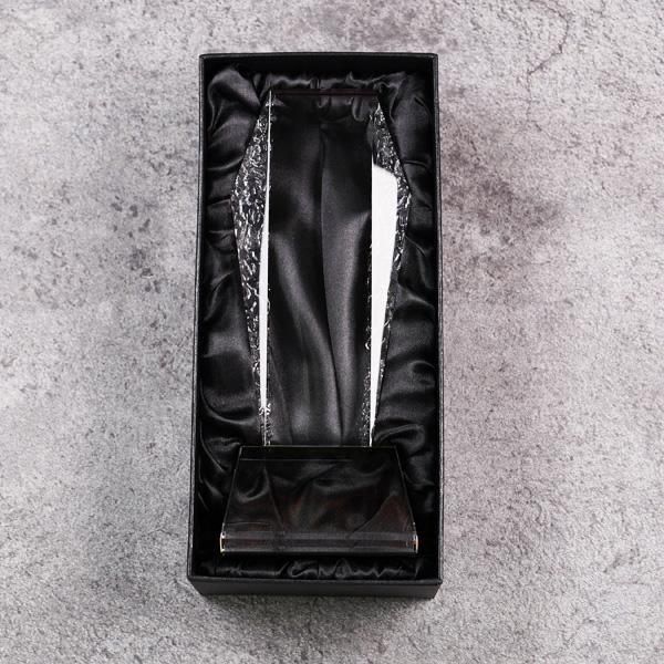 クリスタルの表面に文字、裏面に黒を基調としたデザインを施すことでクリスタルと黒のマッチングが